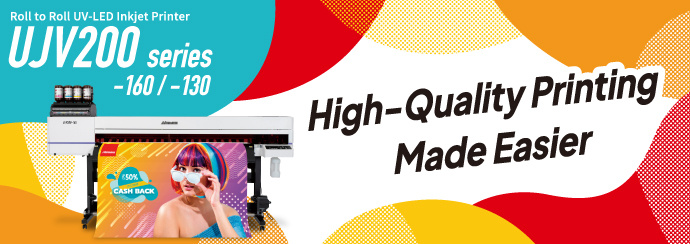 "UJV200 Series" is a Roll to Roll UV inkjet printer which equipped with a single print head of "330 Engine" in our flag-ship printer, enabling even inexperienced operators to produce printed products beautifully, quickly, and easily.
